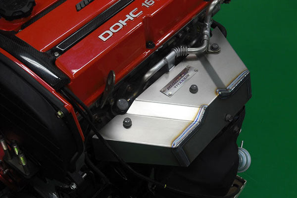 | Product Description | This is a heat shield plate to protect the engine compartment from heat damage caused by heat dissipation from the exhaust manifold. Titanium material was selected because of its high corrosion resistance.The titanium's unique tempera color, which deepens as it is used, gives the engine compartment a racy look.Material: Titanium t0.8mmWeight (main unit): approx. 240g (approx. 430g normal)Accessories: Mounting bolts x 5 |