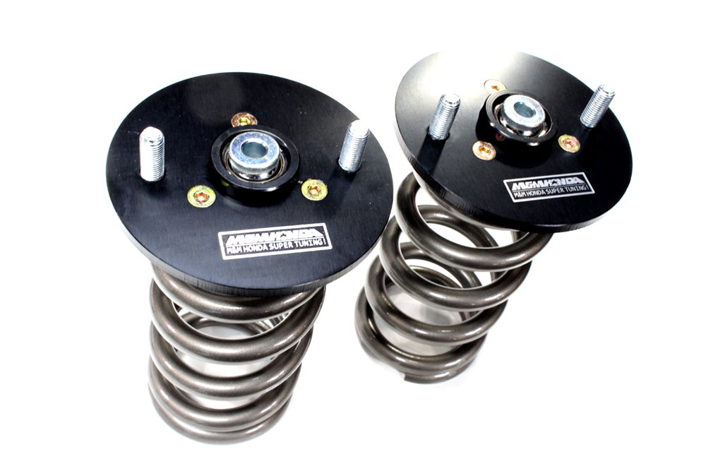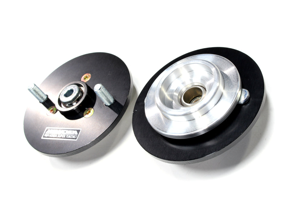 Rear pillow upper mount for series-wound springs. In the setting on the circuit, the ground contact width of the tire at the time of cornering is widened, the grip force is enhanced, the under-measures and the cornering speed can be increased, and the setting width is greatly expanded. There is no distortion or twist of the genuine rubber upper mount, and the direct feeling reacts directly to the movement of the spring. It is undeniable that the CL7 genuine rubber mount, which has a heavy vehicle weight, is inadequate for undercarriage with specifications suitable for sports driving and circuit driving, such as the hard damping force of the vehicle height adjustment damper and high spring rate. Since the hardness of the pillow ball is used, stable steering response is possible with a high rigidity feeling, and it reacts straight to changes in the road surface and fully demonstrates the performance of the damper. It is the best pillow upper mount for sports dampers and vehicle height adjustment dampers. Use a series-wound spring with a diameter of 65φ. It is a set price of 2 rears.