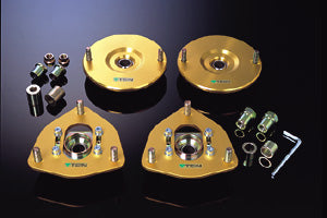 | Product Description | The TEIN Pillow Ball Upper Mount is designed exclusively for each model. The spring upper end position and shock absorber holding position that conform to the design position of the automobile manufacturer suppress the change in vehicle height and optimize the stroke center. The rubber bush enclosed in Eliminates load compliance, suppresses unnecessary alignment changes, and improves tire ground contact. In addition, a sharp steering response has also been achieved. * Uses the world's top manufacturer NMB pillow balls. Super duralumin A2017S-T4, which is also an aircraft material and has strength higher than steel, is used for the upper seat and adjusting plate. Further, by applying alumite surface treatment, it has outstanding strength and durability.A camber adjustment type is adopted for the MacPherson strut type front. It is possible to set according to the driving conditions. High-tensile bolts made of S45C are used for serration bolts. Also, because it has been press-fitted, the installation time is greatly reduced. The dedicated long bolt design makes it easy to install the strut tower bar. |