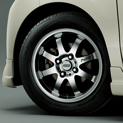 Casting one piece wheel of eight spokes is excellent in hardness balance. Deep rim design. The layout engraved "NR" logo in the spokes. Hub fit the design of the Honda vehicles only. Color mirror face, two colors of silver. Exclusive wheel nut is sold separately. [Recommended tire size 155 / 65R14]