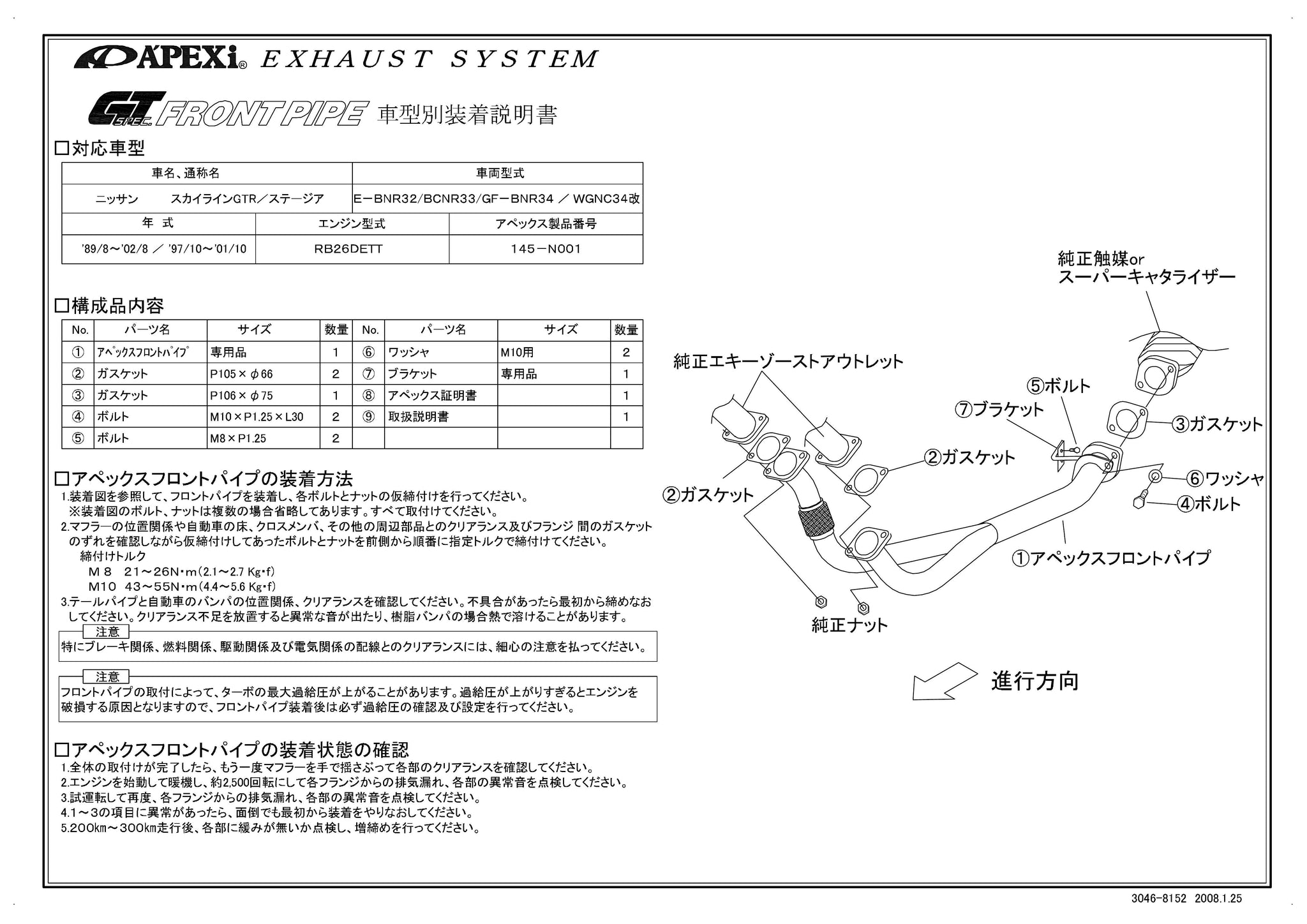 APEXI GT FRONT PIPE For NISSAN Skyline GT-R BCNR33 145-N001