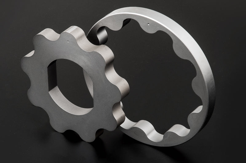 | Product Description | A rotor set with a uniquely designed trochoid profile. The material is highly reliable SCM440H processed by wire cutting. It demonstrates high strength even in sports driving that uses a lot of high rotation. Material: SCM440H Outer rotor diameter: φ88.8mm Tooth thickness: 9mm |