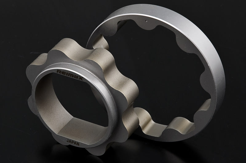 | Product Description | A rotor set with a uniquely designed trochoid profile. The material is highly reliable SCM440H processed by wire cutting. It demonstrates high strength even in sports driving that uses a lot of high rotation. Material: SCM440H Outer rotor diameter: φ77mm Tooth thickness: 12mm |