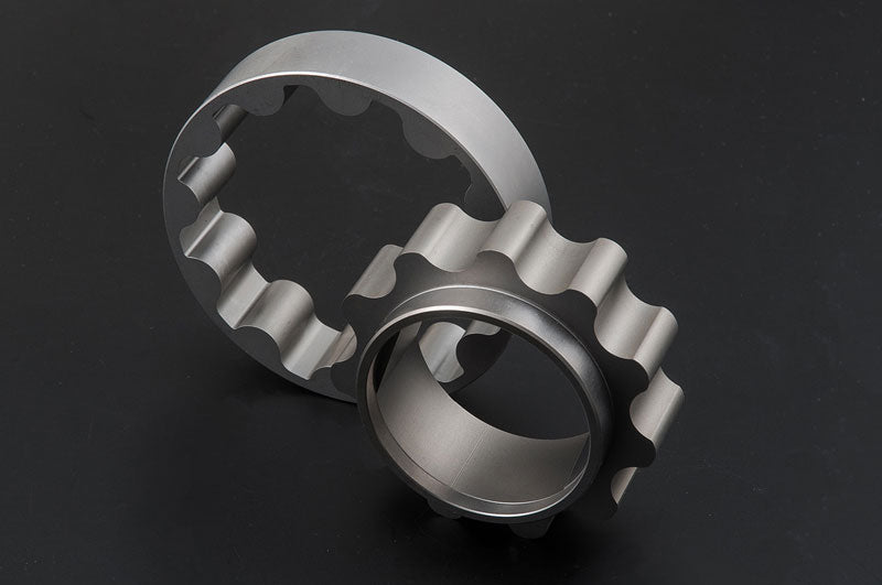 | Product Description | A rotor set with a uniquely designed trochoid profile. The material is highly reliable SCM440H processed by wire cutting. It demonstrates high strength even in sports driving that uses a lot of high rotation. Material: SCM440H Outer rotor diameter: φ77mm Tooth thickness: 18mm |