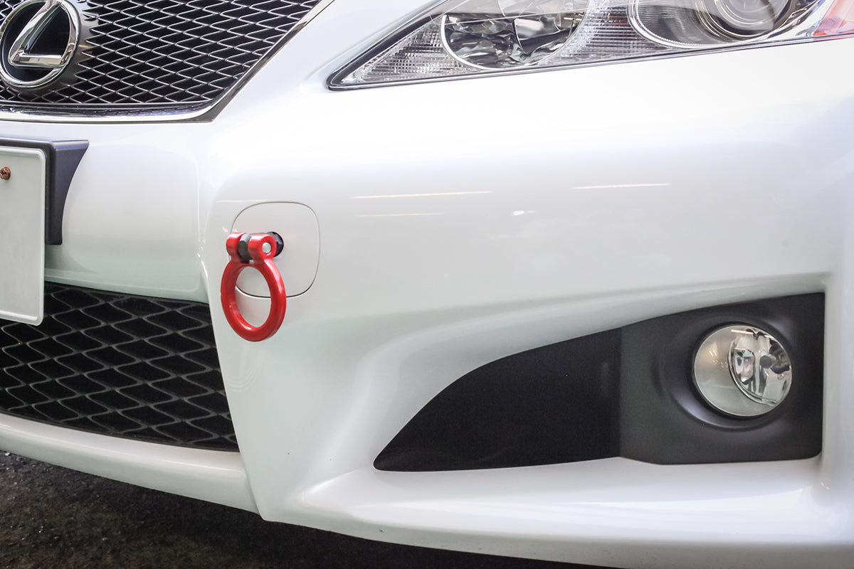 | Product Description | Bolt-on to the genuine tow hook mounting hole. A type of steel swinging towing hook that attaches to the genuine tow hook mounting hole. By folding it, you can drive on public roads even while wearing it. A plunger is used to prevent the vehicle from falling over to the vehicle body due to vibration or wind pressure while driving, and it can be fixed at 0 ° / 90 ° without using tools, so the hook can be moved immediately in an emergency. You can let it. Strength that can be reliably towed in motor sports. The shape is designed according to the FIA J standard, so it can be used for international and domestic races. High rigidity is achieved by making the hook shape of the moving part a perfect ring shape. A lineup of three colors: red, yellow, and silver. It is also effective as a dress-up item that creates a lacy atmosphere. |
