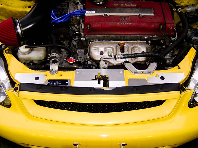 | Product Description | The radiator cooling plate is a part that adjusts the running wind that hits the radiator and improves the cooling effect by attaching it to the upper part of the radiator and the upper part of the front grill. It is also ideal as a dress-up for the engine room. Civic 3Dr ... EK4 Civic Type R ... EK9 |