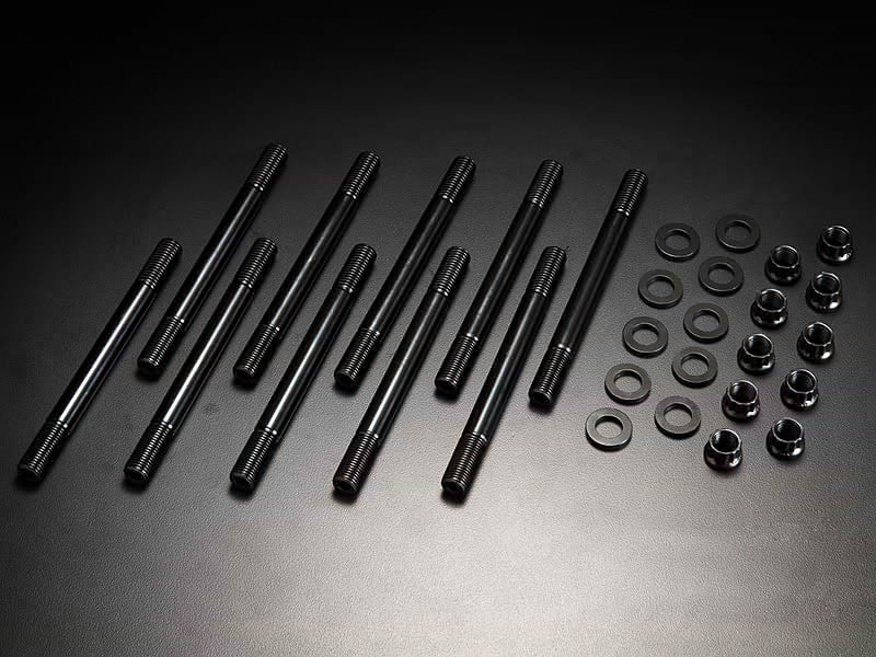 | Product Description | Crankshaft is one of the crucial part that have weighing by combustion power that changed rotation. Crank Main Cap Stud Bolt is a shaft bearing part of crank shaft that fixes a block and a cap connecting together. If this part gets thermal expansion a crank housing could not be kept in circular shape and it could be possible to get scorching. JUN Crank Main Cap Stud Kit has designed to diffuse the tension that usually concentrate at a point to make the most use of the screw by the cylinder head. Therefore, this is resistant to vibration and easier to lead potential-up. JUN produces 2 kinds of Crank Main Cap Stud Kit; Regular Type (with no machining), and Racing Type (with machining using for stout bolts and holes). Form: Stud Size[mm]: Stock |