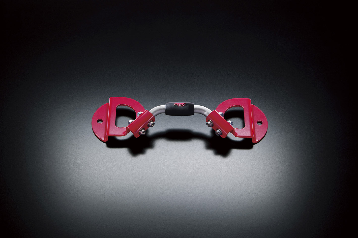 A unique battery holder with a design motif of a flexible tower bar. Not only does it hold the heavy battery, but it also brightens up the interior of the engine compartment.