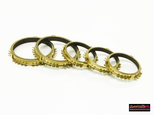 | Product Description | Carbon reinforced synchro set (1-5) For Y1 / S1 type transmission Carbon synchro gear 1st to 5th speed set (for 1 unit). [New carbon fiber lining] All carbon linings are used instead of genuine coatings. [Reliable made in Japan] Brass material is made in Japan to increase strength and reliability. [Design that emphasizes high revs] A special design that estimates shift changes at high revs compared to conventional genuine products. [Increase in contact area] The load is reduced by increasing the contact area of the carbon material compared to the conventional product. [Durability with super long life] By weaving a fiber mesh between carbon and brass material, peeling / wear is reduced. Many people are looking for it due to the discontinuation of genuine products. Recommended aftermarket parts for those who drive on the circuit! |