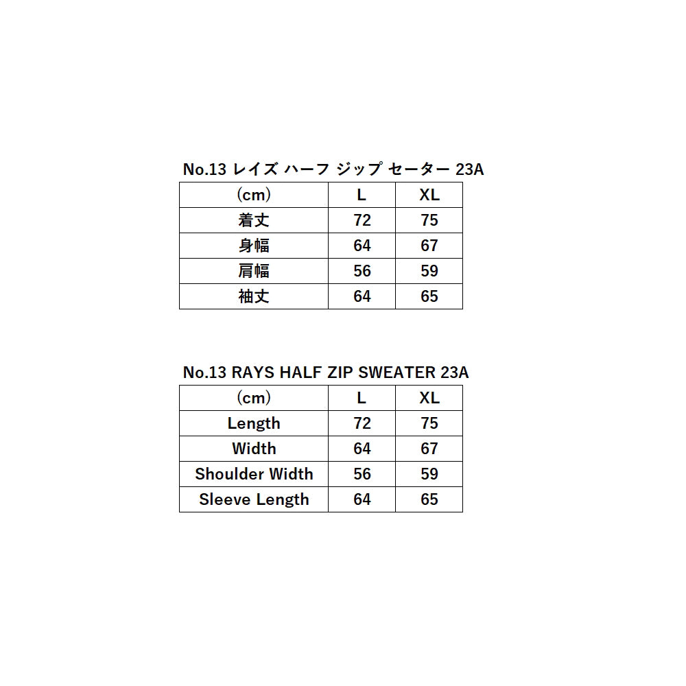RAYS No.13 RAYS HALF ZIP SWEATER 23A SIZE L BLACK 7409030020031