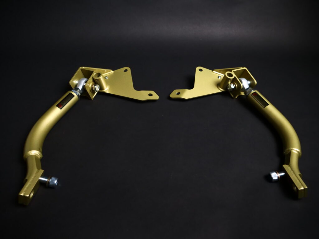 | Product Description | Tension Rod The bushing of the tension rod (Toyota name: front lower arm NO.2), which holds the suspension in the front-rear direction, deforms greatly when set up at a low vehicle height or when running on a circuit in the genuine state. It will significantly reduce chassis performance. In this item, the bush part is changed to a pillow ball, and by improving the rigidity of the front floor and optimizing the pivot position with a dedicated mounting bracket, it suppresses geometry changes and improves stability during braking and steering response. Furthermore, it is possible to adjust the "caster angle and wheel base" by adding an adjustment mechanism to the rod end on the pivot side. *Rod end adjustment range -12 to +8mm ☆Repair parts ・Tension mounting bracket ¥28,800 (for 1 vehicle, tax excluded) ・Turnbuckle body (with lock nut) ¥7,200 (1 piece, tax excluded) [Rod end pillow ball bushing Specifications are subject to change, so please contact us.] Click here for current rod end list ・Rod end pillow ball bushing 182015RO |