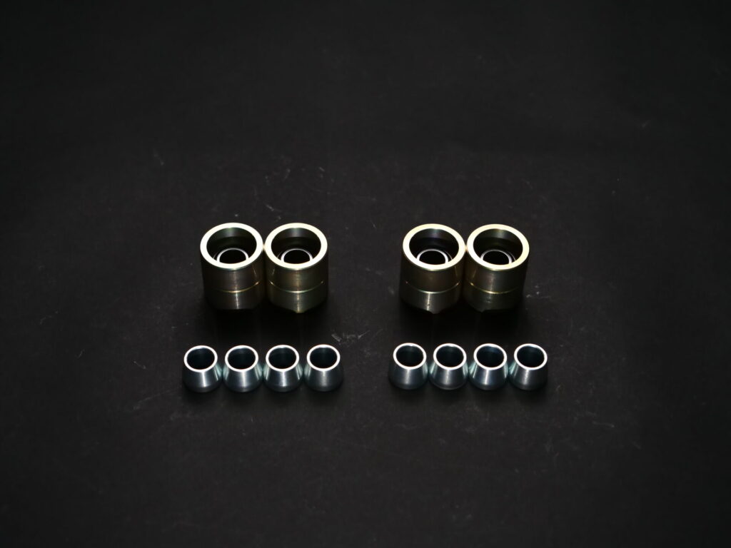 Rear Knuckle Pillow Bush (HI-CAS AVAILABLE) Converting the "road information and traction lag" bushing that occurs due to deterioration and deflection of the rear knuckle bushing into a high-rigidity, high-quality pillow ball. to improve weak points. *There are types with and without HICAS, for steel and aluminum knuckles, etc.