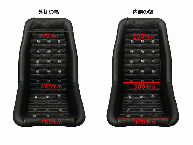 | Product Description | Overall width is the same as the conventional product, approximately 350mm. By making the sides thinner, the hip width is expanded to approximately 270 mm. In addition, the urethane seat is also thin, so the eye position is approximately 70 to 80 mm lower than before. Bottom stop pitch (approx. mm): Horizontal 260/Vertical 315 Bolt: M8 |