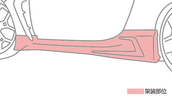 By arranging the claw shape of the front bumper and the modeling that corresponds to the air outlet of the front fender, the styling that is iconic and has a sense of unity is expressed. On the aerodynamic side, the claw shape covers the front of the rear tire to rectify the side of the body, and by setting a cover on the back that scoops up the vehicle, it exerts a rectifying effect that suppresses wobbling during cornering. Material Resin PPE) Ground clearance about 25mm down from the original Approximately 15mm plus from the original total length