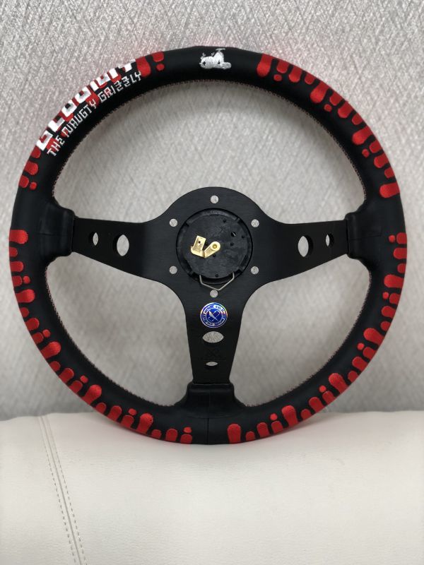 | Product Description | ★Sold out! ! ★ A collaboration between VERTEX and GLOOMY has come true! ! The first series is a steering wheel, a hoodie, and a sticker! ! This design is a miraculous collaboration that was realized through direct negotiations with Mr. Chuck Mori, the creator of Guru Mi! ! I asked for all the designs of the steering wheel, the hoodie, and the sticker. It is a super rare item with copyright and signature. ◆Guru Mi is a mascot character created by illustrator Chuck Mori. The origin of the name is "gurumi", which means stuffed animals, amigurumi, and costumes, the word "gloomy" (meaning pessimistic and hopeless), and the roar of an animal, "gururu~...". By the way, the official notation seems to be "Guru ~ Mi ~". A little over 2 meters tall and weighs 2000 pomegranates. At first glance, it's a cute pink bear character that you can find anywhere, but it has sharp claws and fangs, and is always dripping fresh blood. It is extremely ferocious and often attacks its owner, the boy Petty, causing him to bleed. Although he is well-trained in toilets and other areas, he has a hard time remembering not to attack people. Although it appears and disappears, it has a high probability of appearing mainly in happy people. Because I love to destroy people's happiness. Quote page https://renote.jp/articles/957 This stuffed toy is sold as many as the number of stars, so many people must have seen it. [Specifications] ・Genuine black leather ・90mm DEEP type ・φ330 ・Serial number included ・Horn button sticker included ] Click here for new registration |
