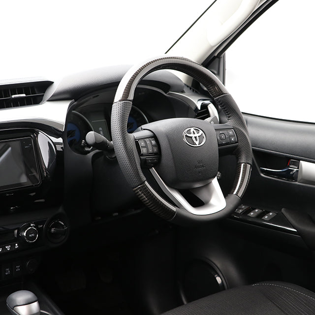 REAL ORIGINAL SERIES SOFT D SHAPE BLACK CARBON BLACK STITCH STEERING WHEEL FOR TOYOTA HILUX GUN125 N125-BKC-BK