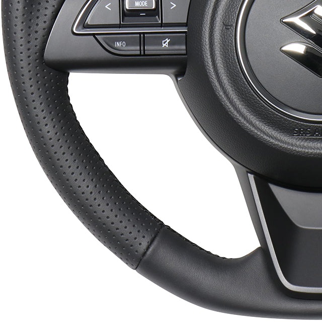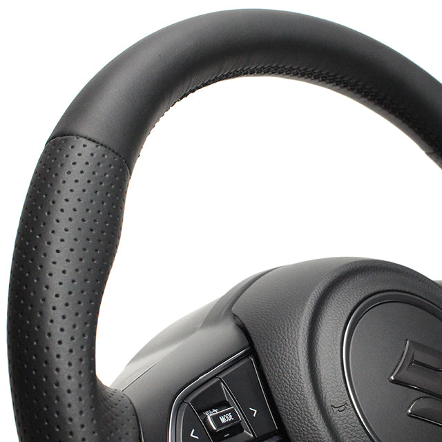 REAL ORIGINAL SERIES SOFT D SHAPE ALL LEATHER BLACK EURO STITCH STEERING WHEEL FOR SUZUKI JIMNY SIERRA JB74W SZB-LPB-BK