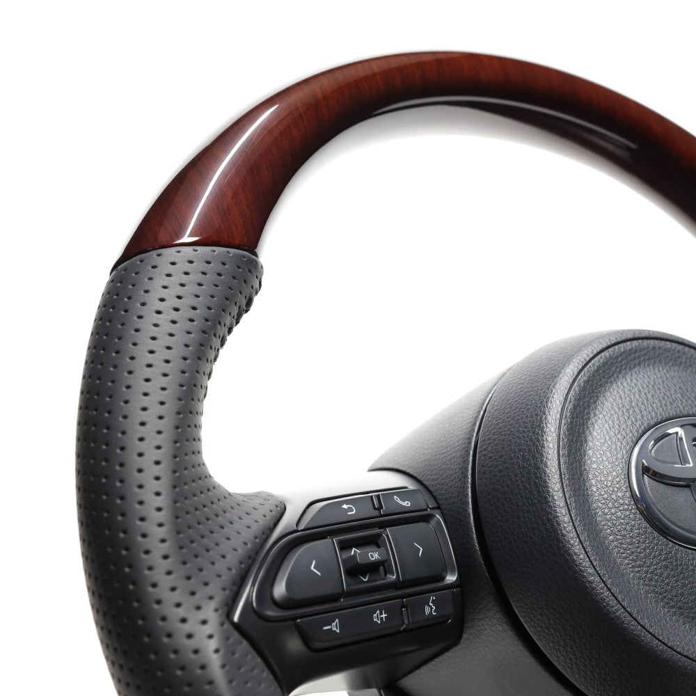 REAL ORIGINAL SERIES D SHAPE 56 BROWN WOOD BLACK STITCH STEERING WHEEL FOR TOYOTA YARIS CROSS GR SPORT MXPJ10 MXPB10 TYJ-56BRW