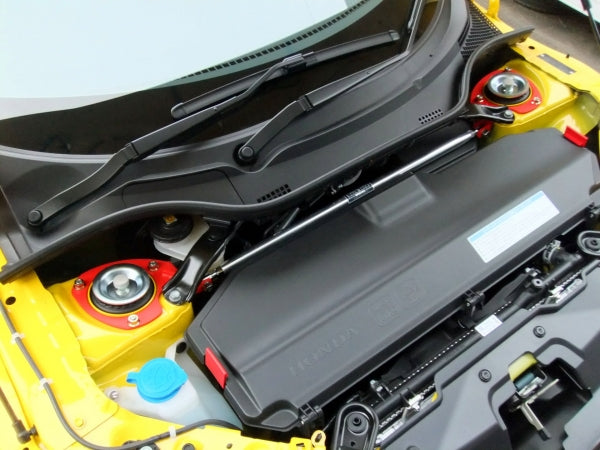 | Product Description | ■Compatible Model: S660 JW5 DBA/3BA MT/CVT ■Color: Red Crystal Paint Finish ■ Installation Instructions: Bolt-on installation It uses a lightweight aluminum round shaft and the flange (steel) is finished with a crystal coating, so it looks good! With the front strut tower bar installed, you can open and close the document (storage) box without any problems. |