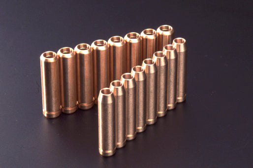 We chose to use Phosphor Bronze (Cn-Sn-P alloy) to make our Valve Guides, for its highly tensile and superior heat transferring ability, which is vital in high power and high RPM outputting engines. Since race engines these days require more power at higher RPM use, these engines now experience more extreme heat conditions. These conditions will increase the deterioration rate on these valve train related components. The Phosphor Bronze material has exceptionally lower friction and the best possible clearances can be maintained, which will reduce the stress on the valve train assembly, prevent seizures and cracking under high stress loads