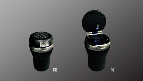 An ashtray with LED with the TRD logo. When you open the lid, the emblem and the socket light up in blue. Solar rechargeable, no battery replacement required. In addition, it is an upper and lower split type that makes it easy to throw away ash and butts and can be washed with water.