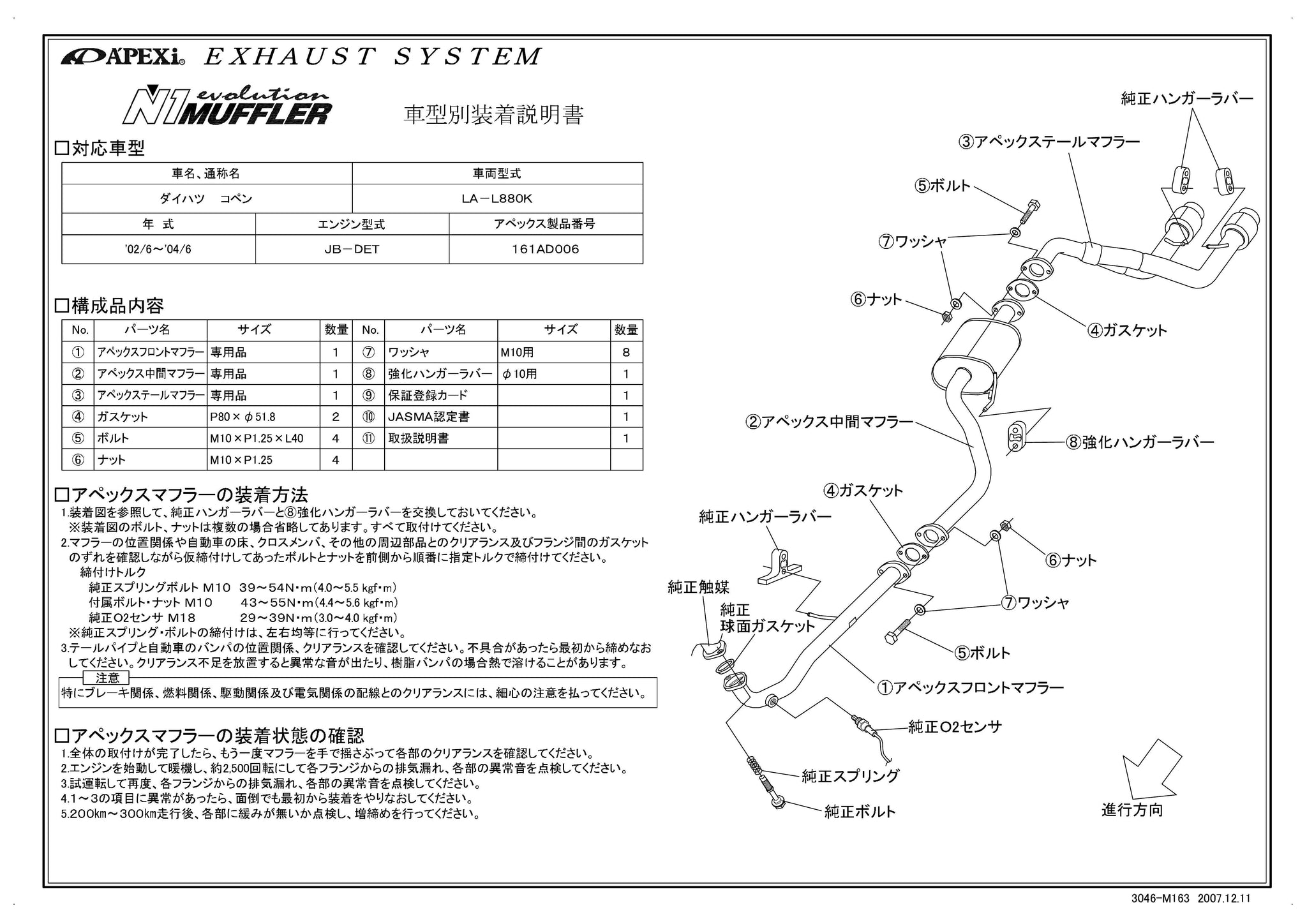 APEXI N1 Evolution Exhaust For DAIHATSU Copen L880K 161AD006