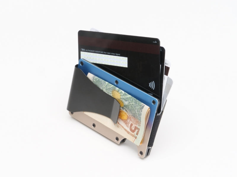 | Product Description | A card holder with titanium plates on the front and back. The rubber band and aluminum plate securely hold cards. ・Can hold 1 to 10 credit cards. ・Also effective in preventing skimming. ・Money clip can hold bills. ・Length 5.4cm x width 8.5cm ・Weight approx. 62g ・CUSCO logo can be printed ・Cards that can be storedare standard credit card size ( length 5.4cm x width 8.5cm) . |