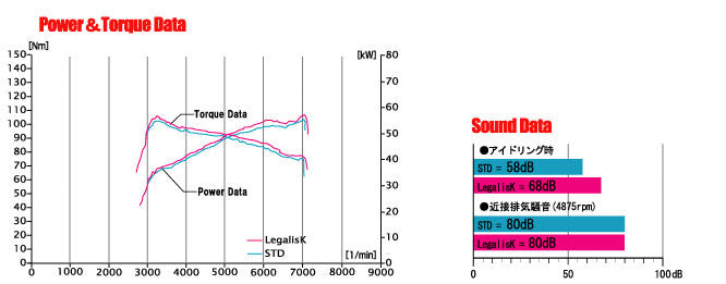 | Maximum output | Stock: 53.2kw (72.4ps) / 6260rpm -> Fujitsubo: 54.8kw (74.5ps) / 6180rpm |
