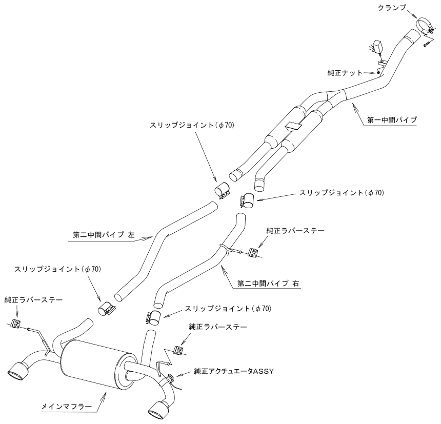 | Product Description | Year Model: 22/10 - Muffler Shape: SSR(Super Turbo Muffler) Main Materials: S304 Tail Outer Diameter: 110 L&R Intermediate Pipe Diameter 74.7 → 60 × 2 → 70 × 2 (※1) Proximity exhaust noise: Normal = 81; HKS =87 Ground clearance when mounted (*2): Numeric Value = 118mm; Parts covered by the kit = Intermediate Pipes |