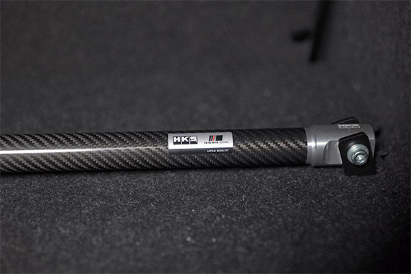 Features:This body reinforcement brace uses a carbon shaft made by Graphite Design, a leading company in carbon shafts for golf.It replaces the original bar (front: steel) and adds a bar (front and rear) connecting the left and right sides.The weave direction is aligned with other HKS carbon products, creating a unified and beautiful look within the engine bay.By replacing the original parts, the unpleasant stiffness will be eliminated and the carbon shaft will absorb unpleasant vibrations, resulting in a smooth, high-quality ride without any impurities.Inevitability of expressing “bending” rather than merely increasing strengthHigh strength and “bending” achieved through joint development with a leading golf shaft manufacturer.HKS has adopted a high quality carbon shaft, which is used for golf clubs, as a solution to improve both driving performance and ride comfort.The carbon brace series was realized with the tuning know-how that HKS has cultivated over the years and with the cooperation of GRAPHITE DESIGN, a prestigious golf shaft manufacturer that is used by famous professional golfers.The unique carbon flexing characteristics, which cannot be achieved with other materials, are freely controlled by the know-how of GRAPHITE DESIGN, a company with rich experience in golf shafts, and the result is a performance that is a cut above conventional brace bars.The effect of the bending not only improves the quality of the car, but also contributes to the stability of the car's behavior on the circuit, making driving even more enjoyable.