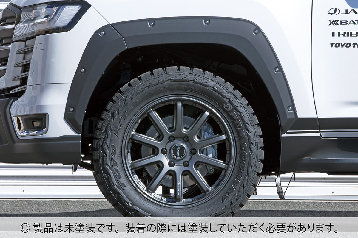 | Remarks | Genuine mudguard can be installed. JAOS Mudguard III can be installed (removal of genuine mudguard is required). * "JAOS Mudguard vehicle-specific mounting kit" scheduled to be released in March 2022. GR SPORT, VX, AX, GX cannot be installed. Models with modellista aero parts cannot be installed. It is necessary to drill holes inside the front fender liner and the rear bumper (1 place each). The attached end molding color is "black". "Gray" is available as an option. Part number: G996002 Price: ¥ 500 (¥ 550 including tax) /1.0m * 8m is required to install one unit Dummy bolts are available in "black" as an option. Part number: D134102 Price: ¥ 3,000 (¥ 3,300 including tax) / 32 pieces * 32 pieces are required to install one unit * Painting is required because it is an unpainted product. Painted products are available (matte black / grain paint) / Part number: B135051MB (for ZX) Designed for safety standards (less than 20 mm) with left and right mounting, but depending on the vehicle It may exceed 20 mm from the verification stated width. In that case, a structural change procedure is required. |