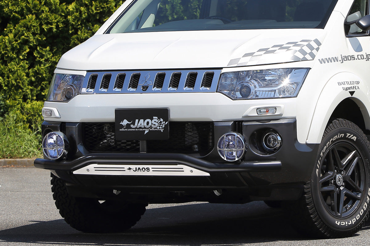 | Product Description | "JAOS front skid bar" that has both toughness and styling. Produces a wild front view. All 4 patterns are available by combining the colors of the bar and plate. Please choose according to your preference. Product details: Bar, plate, bracket, lamp bracket (also used as body mounting bracket) Specifications: Bar: Stainless steel, 60.5φ, Black powder coating End cap: ABS plate: Stainless steel, 2.5t, Shot blast, electrolytic polishing bracket: stainless steel, cationic electrodeposition coating |