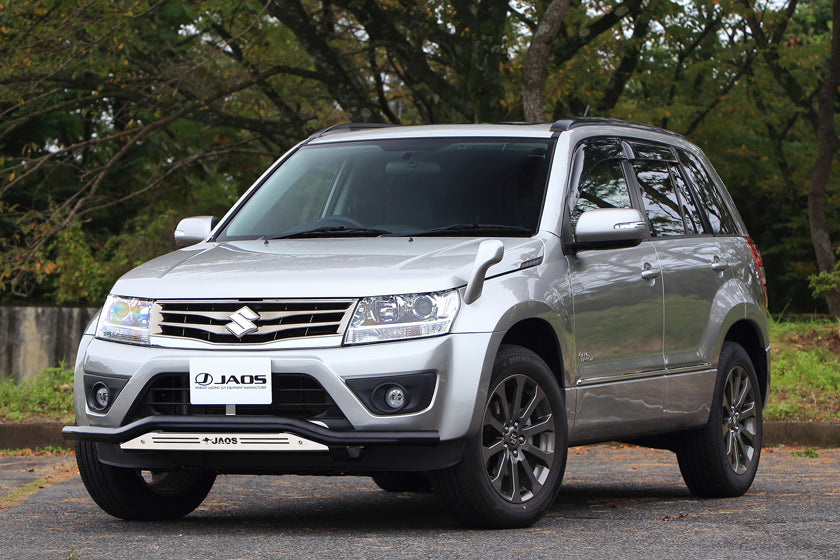| Product Description | "JAOS front skid bar" that has both toughness and styling. The front face of the Escudo is produced with a wild look like 4WD. All 4 patterns are available by combining the colors of the bar and plate. Please choose according to your preference. Product details: Bar, plate, bracket Specifications: Bar: Stainless steel, 60.5φ, Black powder coating End cap: ABS plate: Stainless steel, 2.5t, Shot blast, Electropolishing bracket: Stainless steel, Cationic electrodeposition coating |