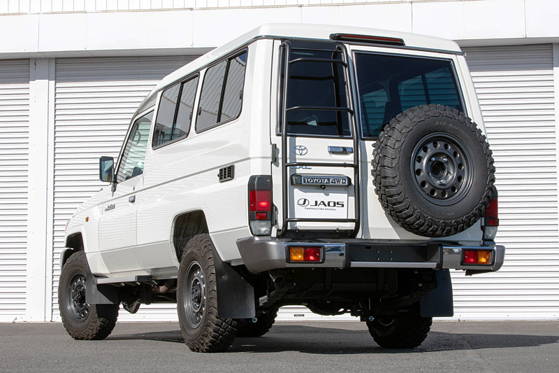 | Product Description | Land Cruiser 78 (Truloop Carrier), which is active as the current model in overseas markets. Nicknamed "Trupy," this vehicle features a two-door long body and high roof. In order to respond to requests from professional shops that are importing in parallel and vehicle users, we have prepared a development vehicle and set up a dedicated "JAOS Rita Ladder II Black". The main body is made of high-quality stainless steel that is resistant to rust, and has a toughness specification with a semi-gloss type black powder coating that has corrosion resistance and chipping resistance. The original step shape, which is a feature of the "JAOS Rear Ladder II" series, is designed to prevent the back door from being kicked with the toes when getting on and off. It is a long-selling item of Jaos that is both easy to use and dress up. Product details: Rear rudder, bracket, bolt set, non-slip tape, rubber spacer, protective sheet Specifications: Rear rudder: Stainless steel, Ø32.0, Black powder coating Bracket: Stainless steel, Black powder coating |