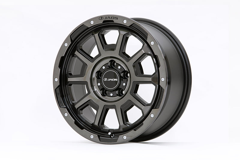 Wheel "JAOS ADAMAS BL 5" featuring a beadlock style. Dummy pierced bolts reminiscent of a strong beadlock and 5 split dish spokes give your feet strength. In addition, the spokes and rims, which are a well-balanced combination of polygons, are made uneven to express a unique three-dimensional effect and a presence that exceeds the size. The colors are "SPB (Smoke Polish Black)", which has a distinctive design, and "MB (Matte Black)", which gives a tough impression. It is a 4WD & SUV dedicated wheel that can be convinced by users of various orientations.