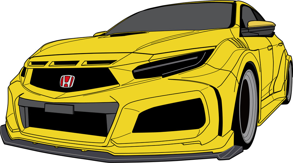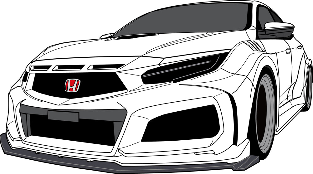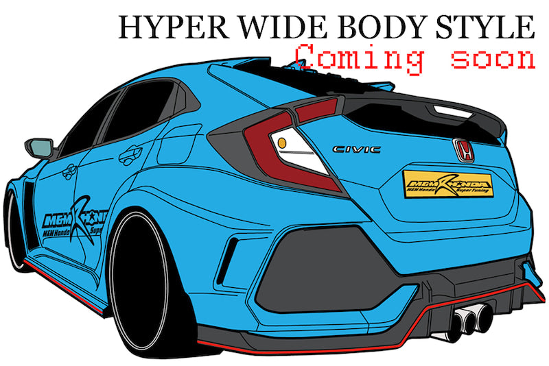 | Product Description | CIVIC FK8 / 7 Hyper Wide Body Kit 2022 model We are accepting pre-orders now. The Type MR03 model consists of 14 pieces with an under spoiler made of carbon / FRP material. The front aero bumper, front wide fender, and side spoiler are all genuine replacement types, and the rear wide fender is double-sided taped, so there is no need to drill holes in the body for installation. detail: Type MR03 model / 14 pieces (with carbon / FRP under spoiler) ● Front aero bumper (genuine replacement type) 1 piece ● Front under spoiler / carbon FRP material 1 piece ● Front wide fender (genuine replacement type) + 40mm wide on one side 4 Piece ● Side spoiler (genuine replacement type) 2 pieces ● Rear wide fender (double-sided tape sticking type) 1 side + 30 mm wide 6 pieces ● The material is FRP white gel coat finish, so painting is required. ● Genuine fog lights cannot be installed. * The overall width and overall length will change, so a structural change notification is required. The front aero bumper maximizes the cooling efficiency of the radiator when driving on the circuit, and it is exclusively for the wide body that you can feel the challenging and aggressive superiority that incorporates the modeling specialized in racing design and the latest HONDA design flow. It is an aero bumper. The front under spoiler is a large under spoiler that smoothly pushes the air flow from the bumper into the bottom of the body, accelerates the air flow in a narrow space, and generates a strong negative pressure with the ground. It reduces the amount of lift when driving on highways and circuits, and generates stability and down hose. The front wide fender is a genuine replacement type. It is possible to install big size tires that receive the high power of Type R, and aim for wide tread. With a powerful wide body silhouette, it does not look like a size up of 40 mm on one side. In addition, the widened body line by the fender exchange type is naturally coordinated without any discomfort. The side spoiler is a genuine replacement type. The large and simple design balances with the widened fender, speeds up the flow velocity of the air flowing on the bottom of the body, and greatly contributes to the down hose. With the rear wide fender, you can feel the wide body closer by simply attaching it with double-sided tape without making a hole in the body. The size increase is limited to 30 mm on one side, and it is OK without fender processing. The wide line that flows from the rear door to the rear fender and rear bumper feels natural and one with the body. Front Bumper / 1PCS FRP-Exchange PartsExtension Lip for F / B / 1PCS Carbon / FRP-Exchange PartsFront Wide Fender / L / R 4PCS + 40mmWide FRP-Exchange PartsSide Spoiler / L / R 2PCS FRP-Exchange PartsRear Wide Fender / L / R 6PCS + 30mmWide FRP-Double-faced tapes |