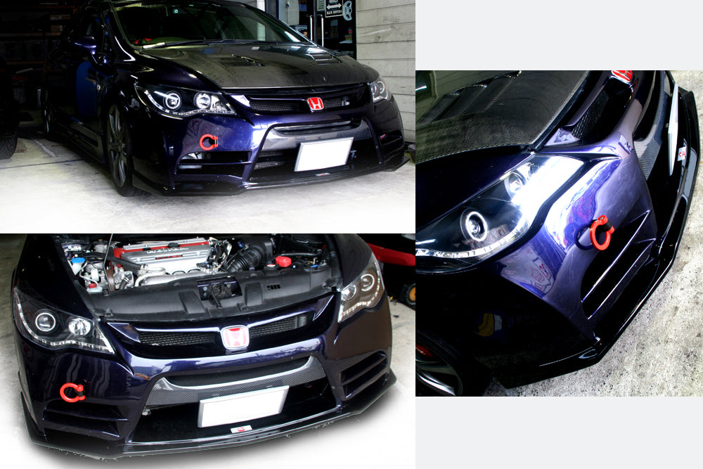 | Product Description | Front tow hook for FD2 only. Since it comes with a dedicated bracket that can be attached by bolt-on, remove the bumper and fix the bracket using ready-made bolts. With the ball lock joint method, the angle can be adjusted with a "tick" up and down, left and right, and it can be folded. You can easily remove the tow hook without removing the bumper even when riding in the city or at the time of vehicle inspection. It retains the strength that can be used in JAF official races. It is a product that is very much appreciated by dress-up users. There are two colors, red and yellow. The bumper is compatible with genuine bumpers and our aero bumpers. Installation requires a hole in the bumper for the tow hitch screw to pass through. |