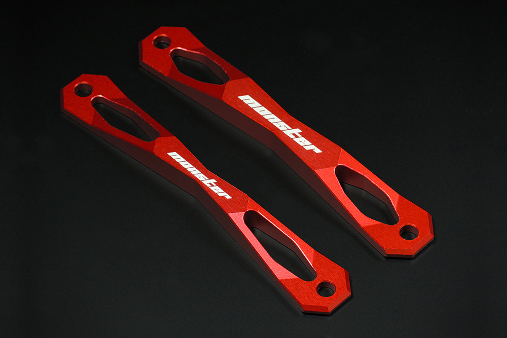 | Product Description | Material: machined aluminum alloy; Specifications: Red anodized finish; Installation method: Replace the battery stay with a stock battery stay. *Manufactured by machining from a high-grade aluminum block, this product not only looks good, but is also strong with minimal increase in weight. Recommended for refurbishing stays that have corroded over long periods of use. In order to accommodate a wide range of car models and battery types, we have set up Type-SA, which emphasizes strength, and Type-SB, which has a slim profile to accommodate batteries for recent idling stop vehicles. |