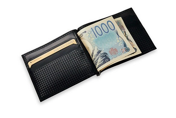 A money clip made of carbon-look leather with a shining GT-R metal logo. specification Size: 9.1cm x 11.3cm x 1cm