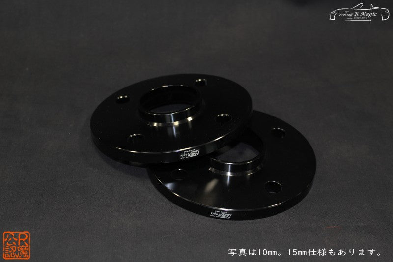 | Product Description | It is a spacer with a hub ring for MAZDA's PCD100-4 hole car. 1 set with 2 sheets The thickness is 10 mm and 15 mm. You can choose the color from black alumite and pink alumite. Pink alumite specifications are limited to the 1st lot. R Magic laser marking is included in the side part. When using this product, be sure to replace it with a long hub bolt. |