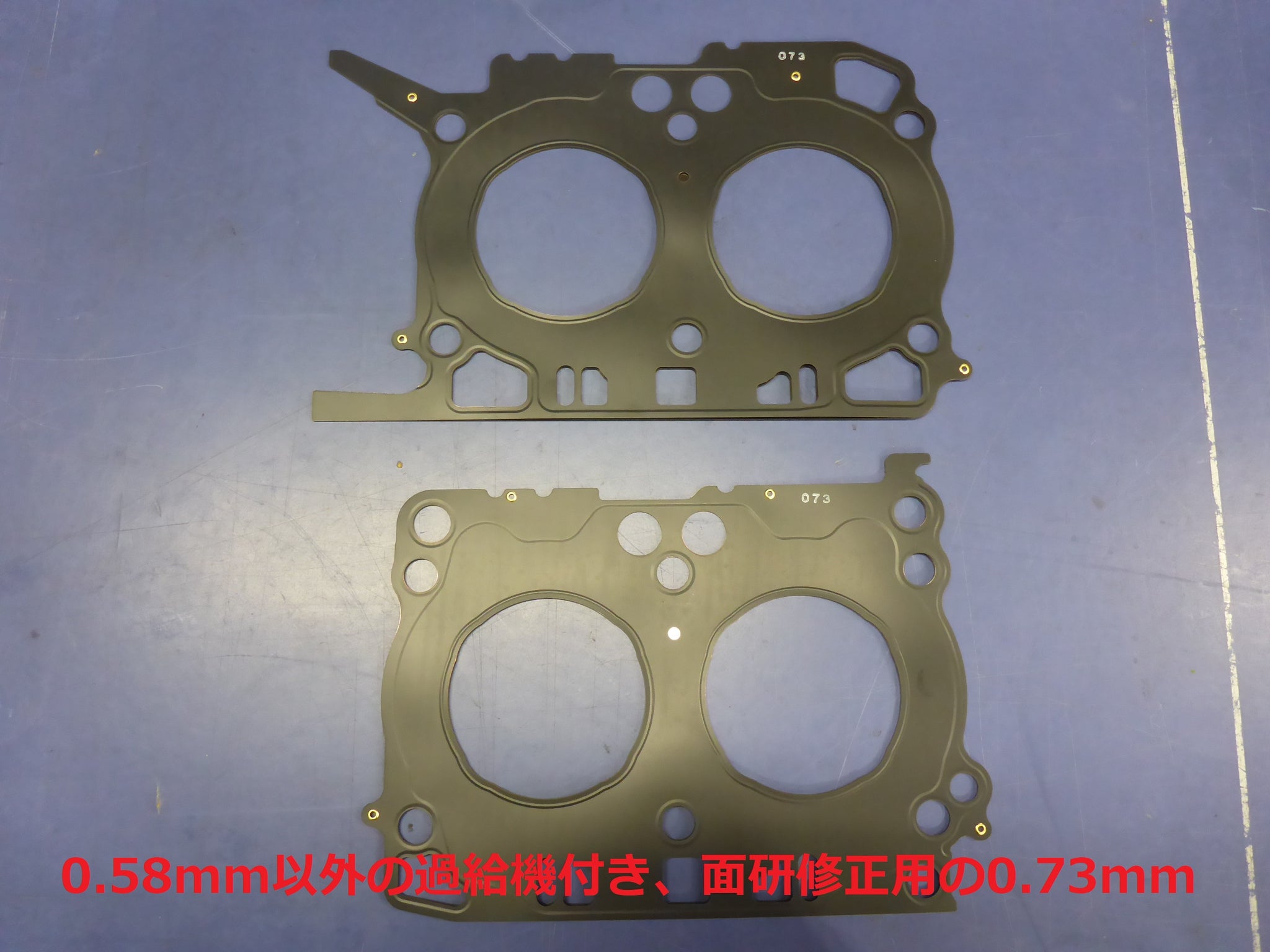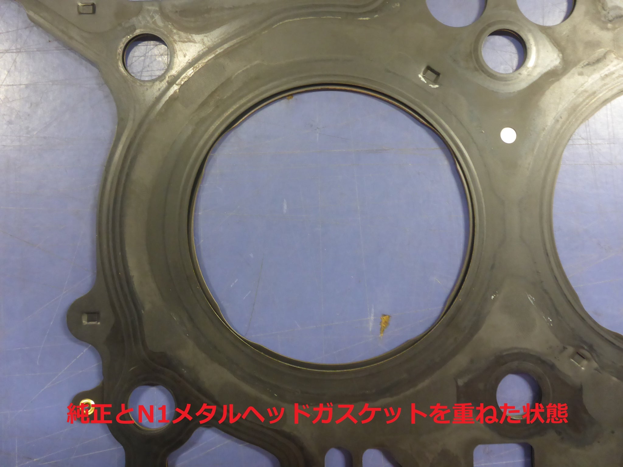 made a metal head gasket for the new project FA20. The mass-produced head gasket has a cylinder bore of 89.4mm compared to 86.0mm, which is considerably larger than the bore. So, in a high compression NA engine, the compression is low and the size is not appropriate for the combustion chamber. This N1 metal head gasket is designed to have the same size as the shape of the combustion chamber. Also, with a booster, we would like to worry about the gasket falling out, but the combustion pressure is always accumulated on the gasket working surface, which is 3.4mm larger than the bore. The 3rd image is an image of the state where the genuine is placed on the cylinder head and the image of the state where the N1 head gasket is placed and the state of being superimposed. Two types of gasket thickness are available: 0.58mm, which is the same as the genuine one, and 0.73mm, which is for surface grinding repair.