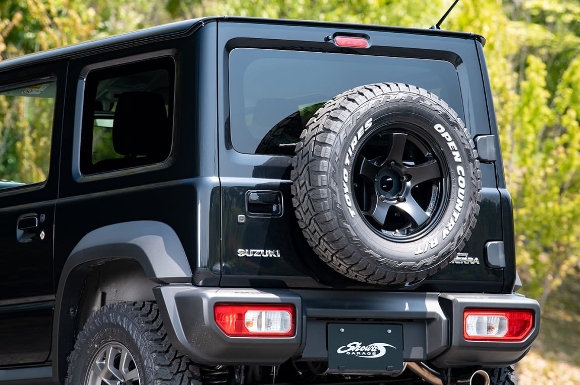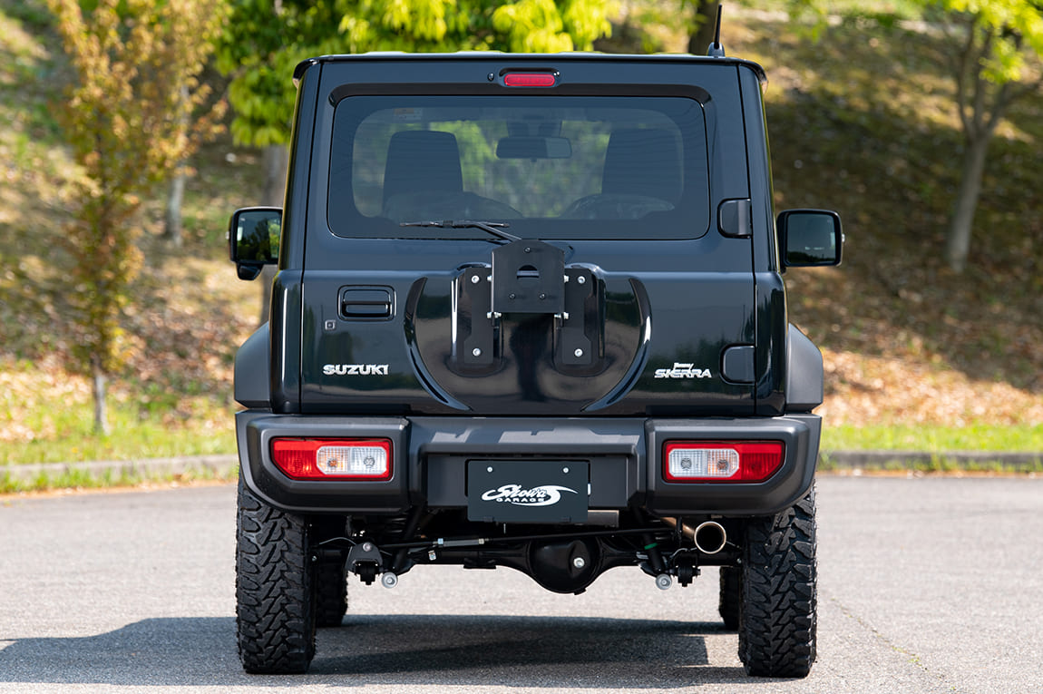 | Product Description | This is a bracket that mounts a spare tire including a large diameter tire (225/75R16) facing up. The amount of movement is 106mm upward. The depth is also adjustable and compatible with wide tires. In the horizontal direction, the left and right center positions are the same as the original, giving it a clean and balanced appearance. It is highly consistent with the genuine bumper and fits in style. This model is perfect for those who don't need hard customization around the rear, including replacing the bumper spoiler and moving the license plate. Comes with rubber to prevent tire vibration. The amount of movement is 106mm upward. Large diameter tires (225/75R16) are also compatible. The left and right center positions are the same as the original, giving a clean balance in appearance. |