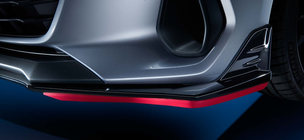 For vehicles equipped with the front under spoiler (SG517CC000) of the new SUBARU BRZ (ZD). Aero parts that also have a protector function that is attached to the tip of the underside of the front under spoiler. Design matching is also taken into consideration while supporting aerodynamic design that rectifies the running wind taken in from the front on the vehicle body floor and generates steering stability. Left and right split type. Made of hard rubber. * The listed prices are the manufacturer's suggested retail prices excluding wages. * The ground clearance of the mounting part is reduced by approximately 15 mm. * Must be attached with Subaru genuine accessory "STI Front Under Spoiler" (SG517CC000) * Cannot be attached together with the genuine Subaru accessory "Body Cover".