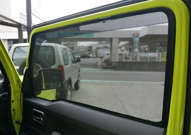 | Product Description | Nylon mesh sunshade specially designed for JB64/74. Easy to put on and take off with the magnet built into the body frame! Cuts 67.1% of UV rays. Perfect for ventilation when camping or sleeping in the car, as it prevents hot air and insects from entering. It is not possible to drive with the front seats installed. |