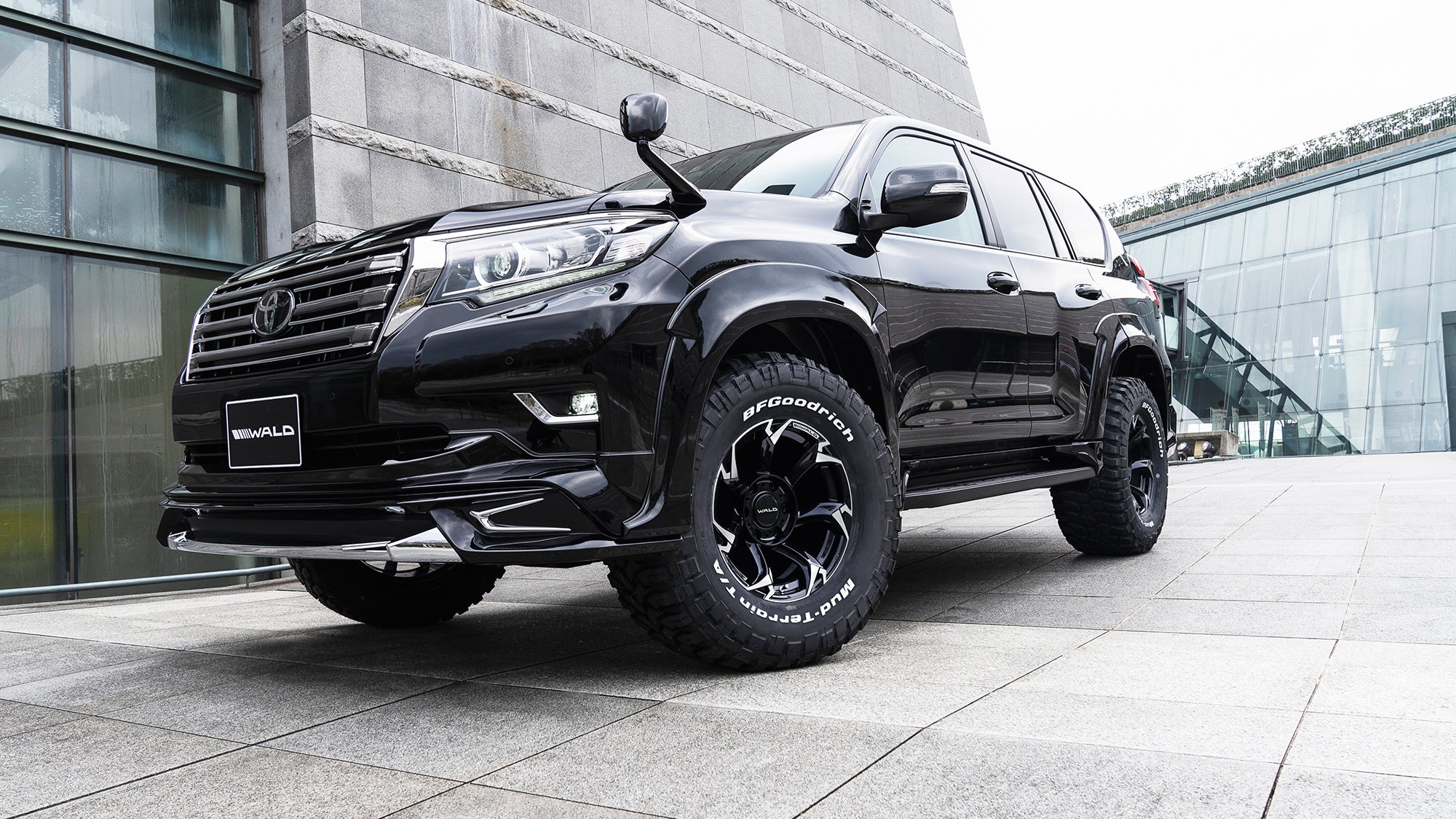 | Product Description | Year Model: From September 2017. 2P Kit includes Front Spolier & Rear Skirt FRONT SPOLIER - Made of ABS. Includes plated garnish. Not available for Black Edition/70th Anniversary Limited. REAR SKIRT - Made of ABS. Includes LED smoothing panel and reflector. LED lamp (LEDBGL175) sold separately. Requires muffler adapter. After Face Lift Model of Toyota 150 PRADO got the tuning program by WALD International. The style of the front and rear spoilers are the add-on "SPORTS LINE” Design. To enhance the quality of the products and make the easy installation, ABS Material is adopted. The Accent Chrome Garnish create the high-class air on the body. By developing the 45 mm width (One Side) Over Fender, the aggressive style can be on TOYOTA 150 PRADO. The Exclusive Size Wheel is set up for the Over Fender. In addition to the extra modification, the Dual Side Muffler is developed for the heavy exhaust sound. |
